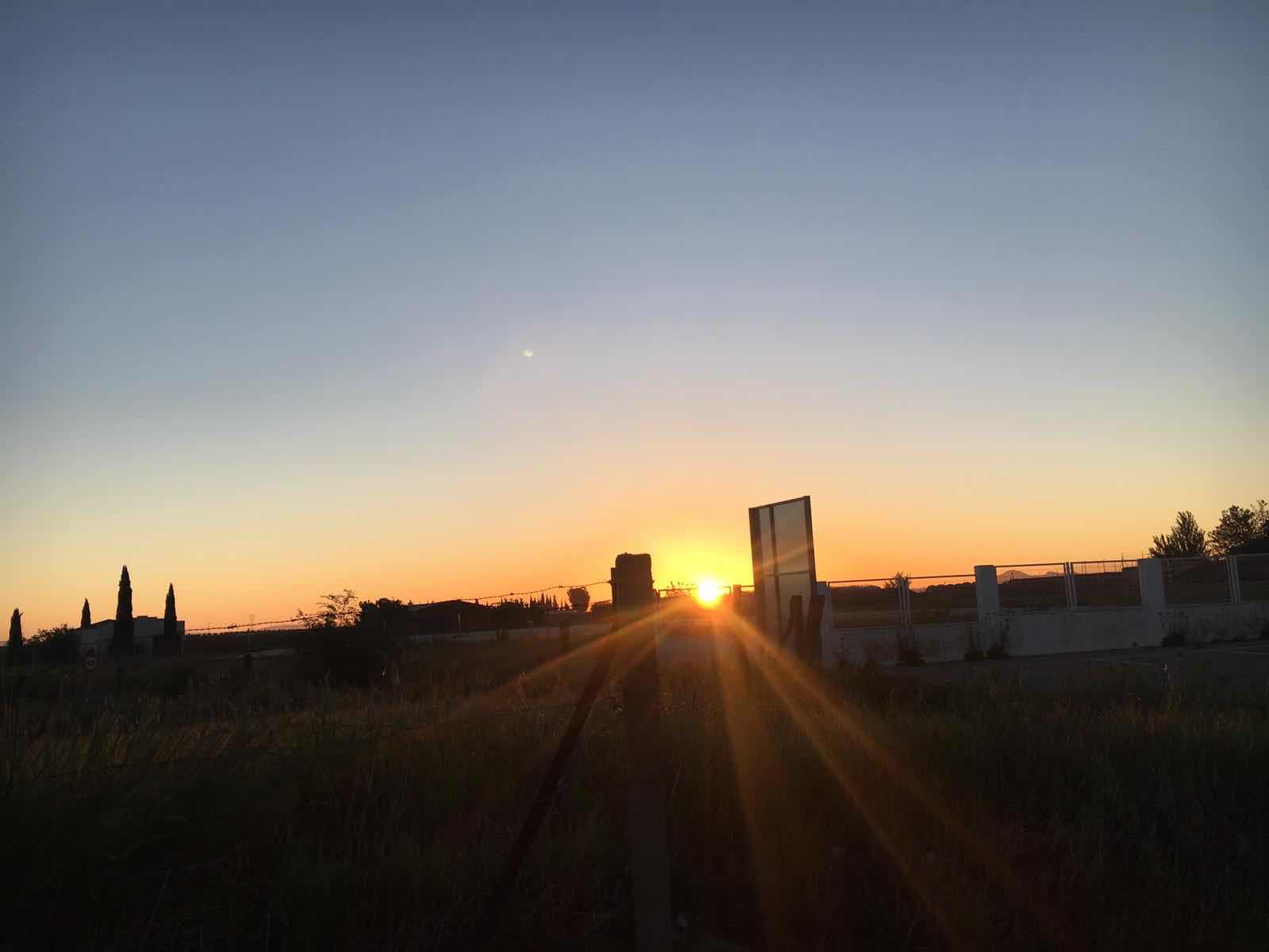 Er komt wat meer leven in de brouwerij. In Spanje begint het avondleven ook pas echt in de avond. Uit de huizen komen kinderen en het parkje begint te leven. De speeltoestellen worden gebruikt. Dat is bijzonder, want vaak zie je onderweg lege speeltuinen. Zelfs de vogels maken nu geluid. Ze kwisperen dat het een lieve lust is. Ik zit in mijn korte broek/rok buiten. Het kan voor het eerst.