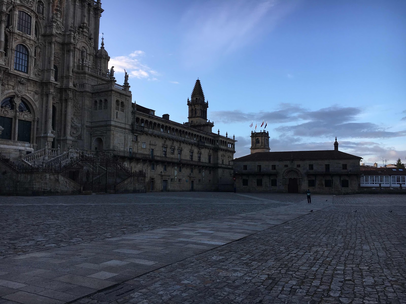 In de diningroom van het Seminario begin ik aan dit blog. Ik schuif het voorruit. Het beschrijven van de laatste dag in Santiago is nu niet bepaalt iets waar ik op zit te wachten. We worden de hele tijd heen en weer geslingerd tussen het verlangen naar huis en het verlangen naar de tijd die achter ons ligt. Gewoon afkicken dus.We hadden ons verheugd op een lekker dagje Santiago. Maar het weer was af en toe erg slecht. Met bakken kwam het soms uit de hemel. En dan scheen de zon weer. Bovendien was het een feestdag en alle winkels waren dicht. Nu is dat op zich geen probleem. We kunnen niets meenemen naar huis, maar kijken vind ik ook leuk.