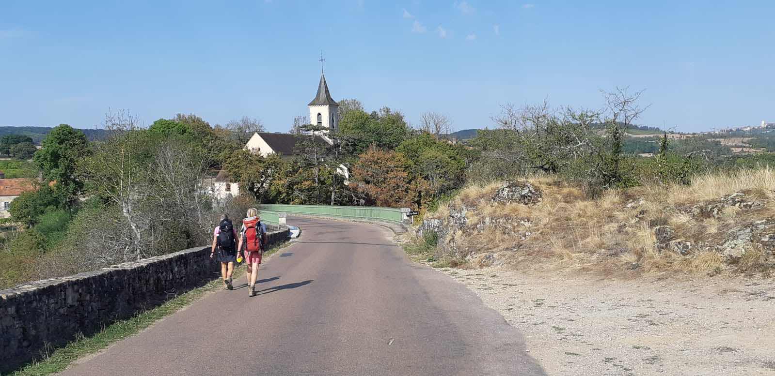 We lopen de pelgrimsroute van Vezelay naar Never. Het is schitterend. Maar heel erg warm. Ik denk zeker 32 graden in de schaduw.